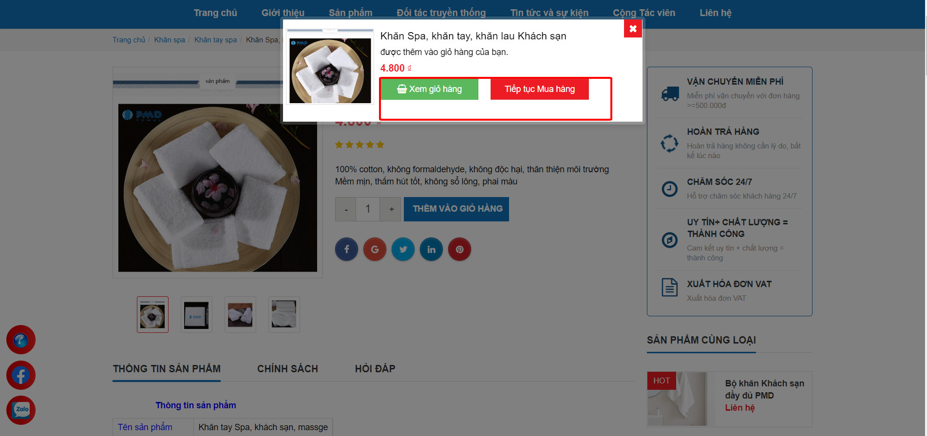Bước 4: Khi Khách hàng quyết định mua sản phẩm vui lòng nhấp chọn ô “thêm vào giỏ hàng” sau đó nhấp “xem giỏ hàng”