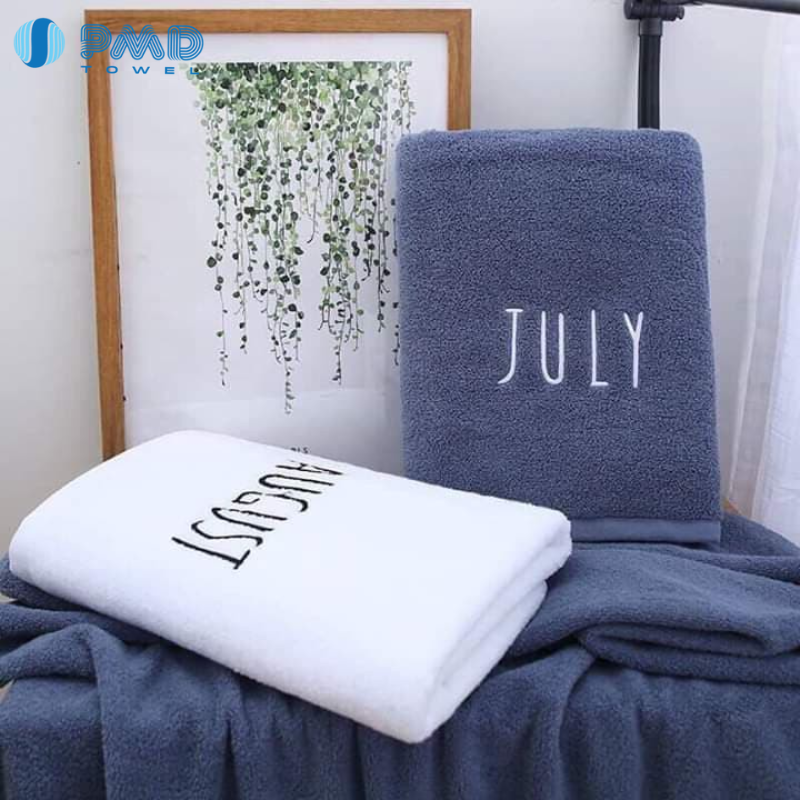 Khăn cotton thêu tên thương hiệu thắt nơ xinh xắn